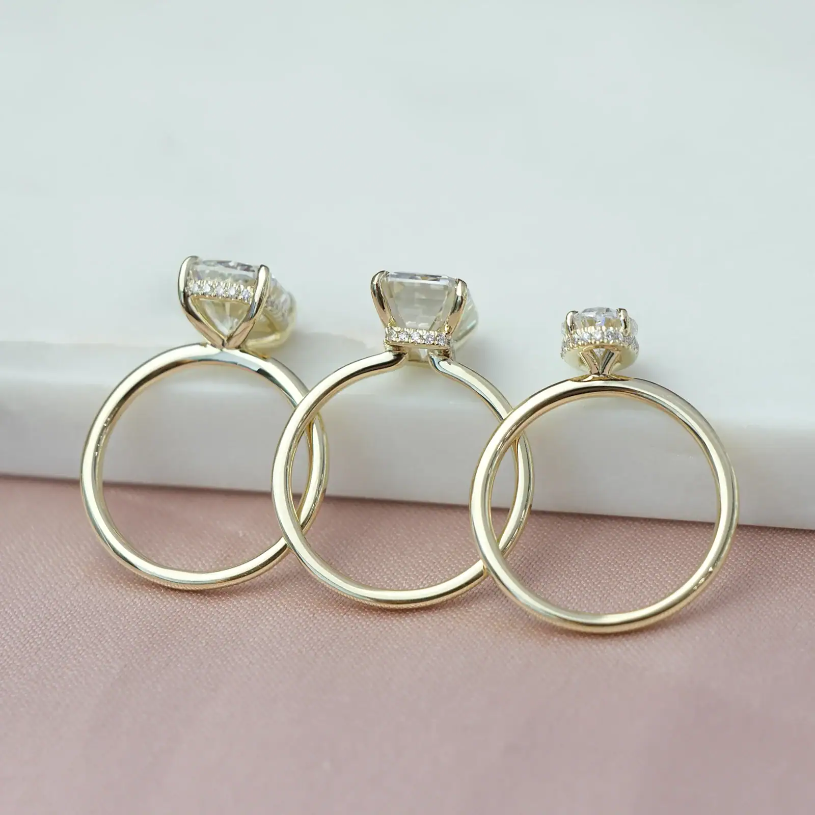 Hidden halo rings take a different approach. They keep the top view clean and move the detail underneath. This changes how the ring interacts with light and how it is seen by others.