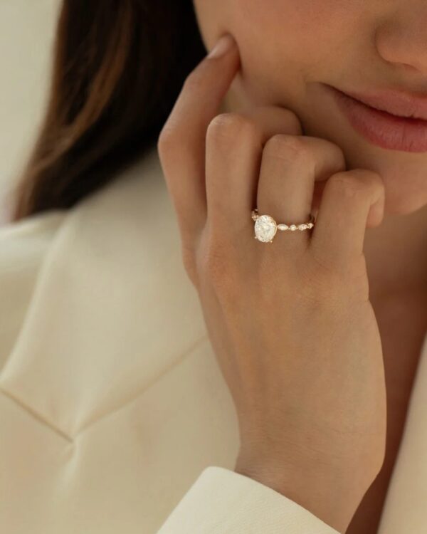 3ct Oval Lab Diamond Engagement Ring With Flower Basket