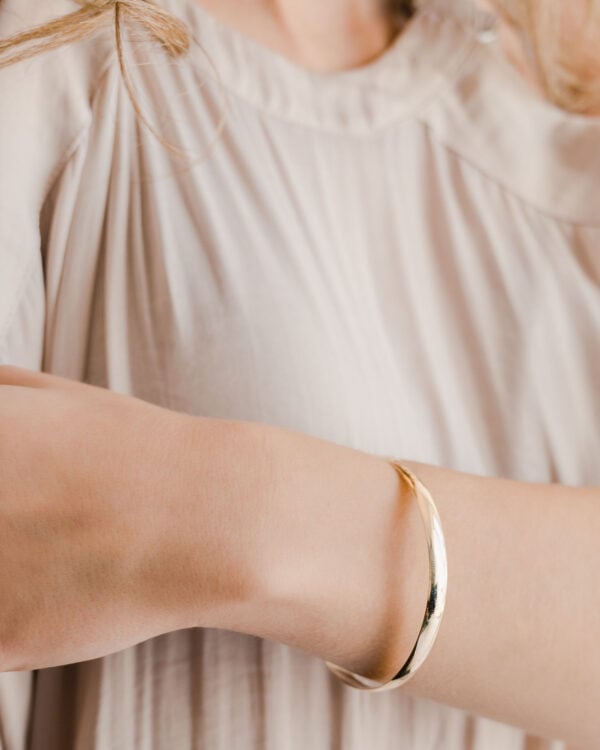 You can wear a single bangle for a minimal finish. You can stack multiple bangles for more presence. You can mix finishes and widths to create contrast without needing many different pieces.