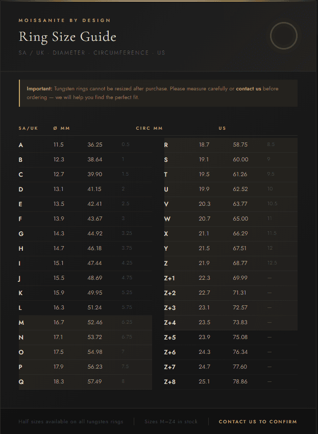 We are known in South Africa for offering moissanite engagement rings and lab-grown diamond rings that combine elegance with ethical sourcing. Adding tungsten wedding rings to our collection means you can find the perfect balance of affordability, durability, and timeless appeal.