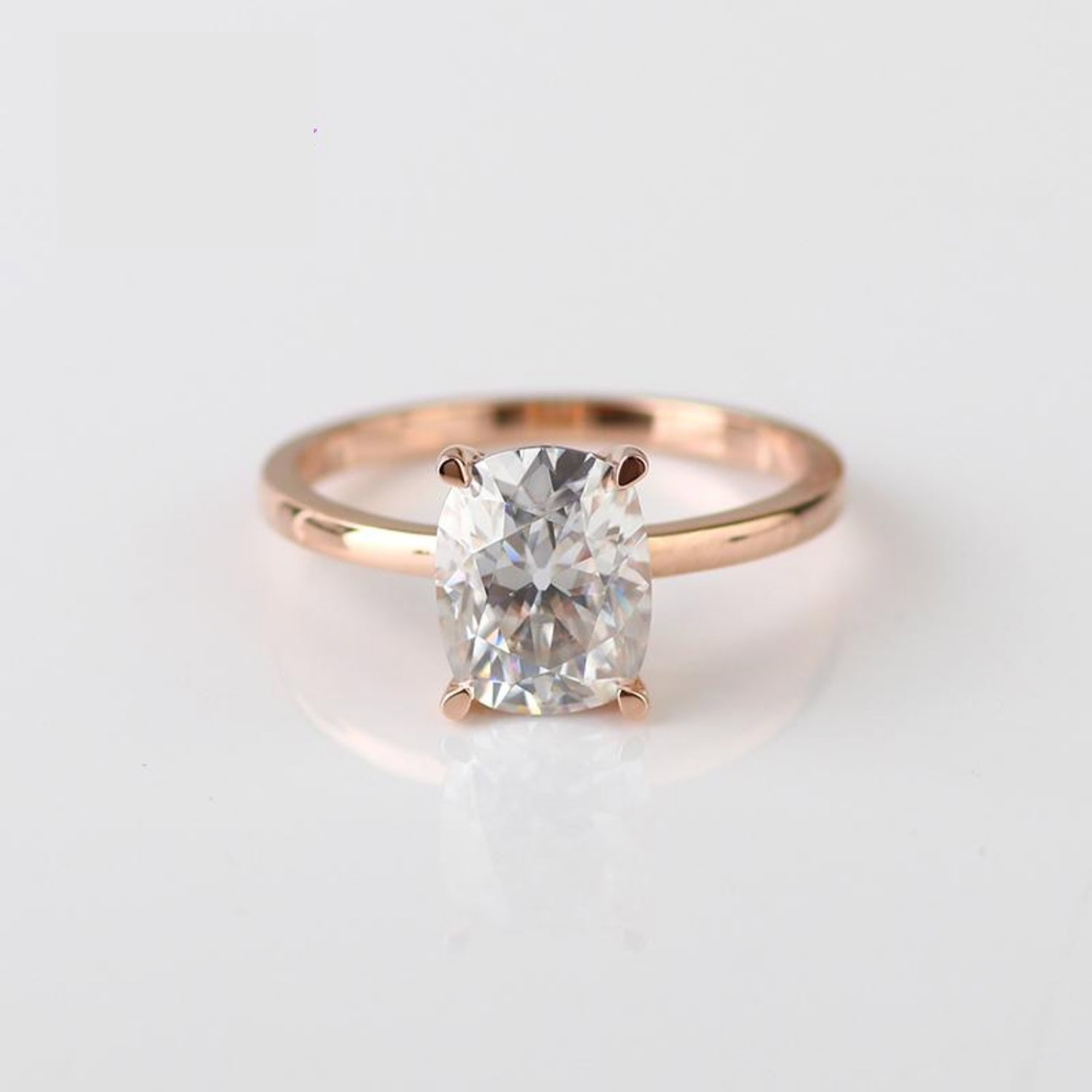Elongated Cushion Moissanite Solitaire Engagement Ring