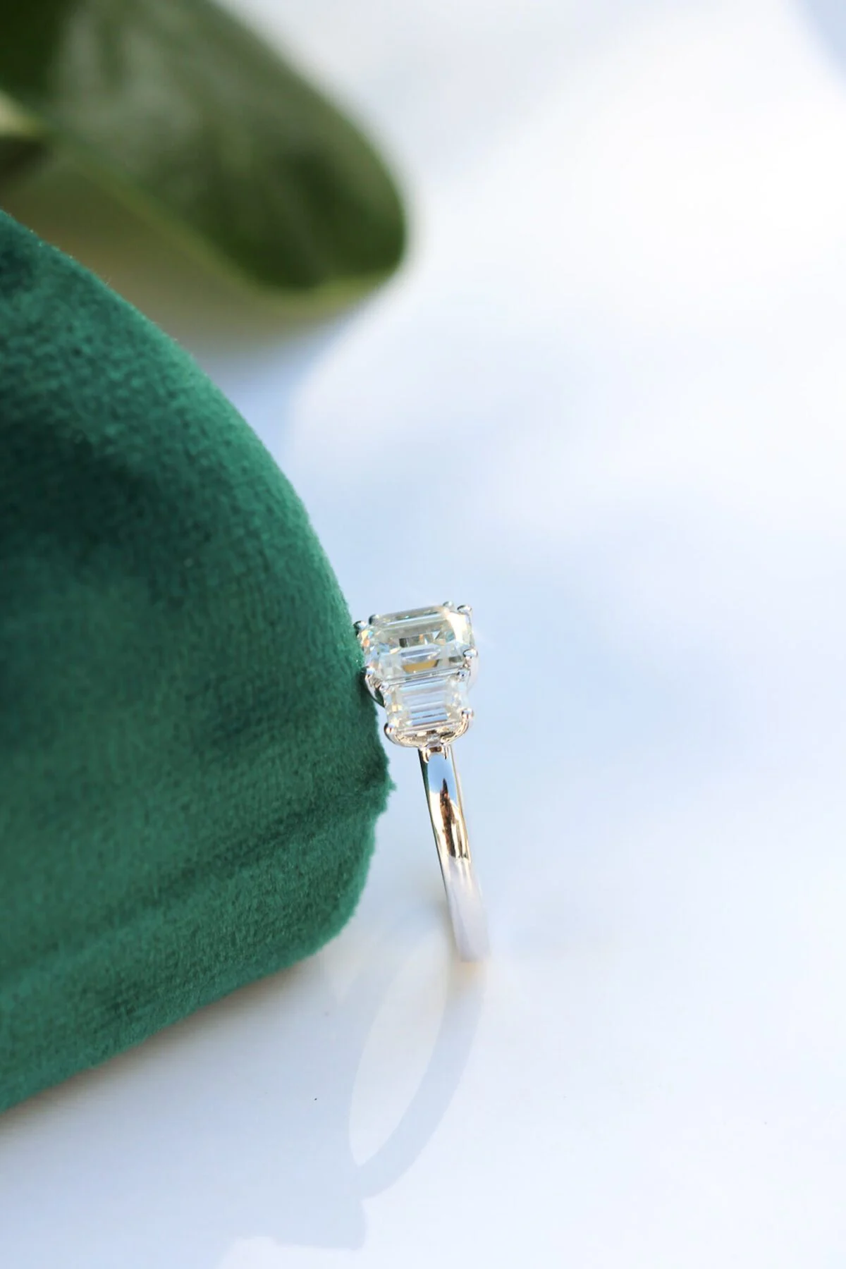 Emerald Cut Moissanite Trilogy Rings