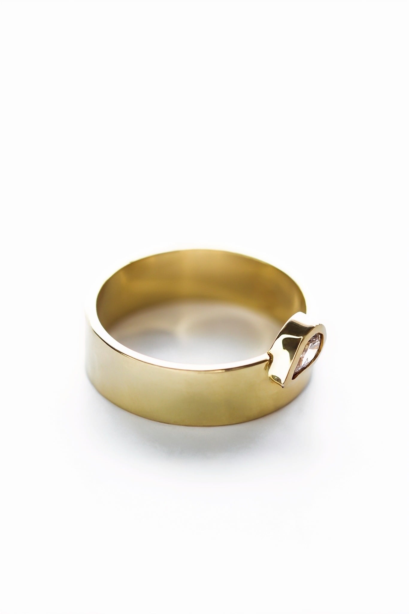 Gold Broad Bar Bezel Pear Ring
