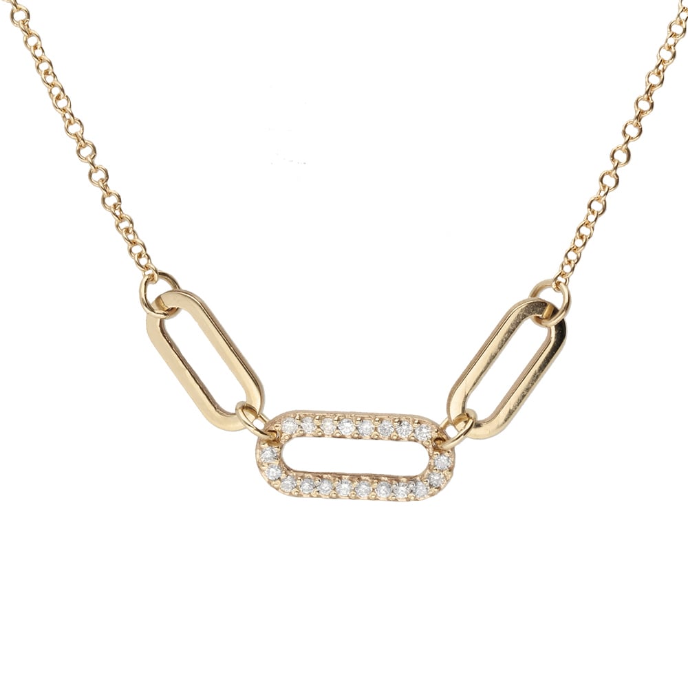 A opulent Gold necklace is a great way to round out your Gold Jewellery collection. Add a touch of flair to your collection with these Gold Diamond Oval Link Necklace.