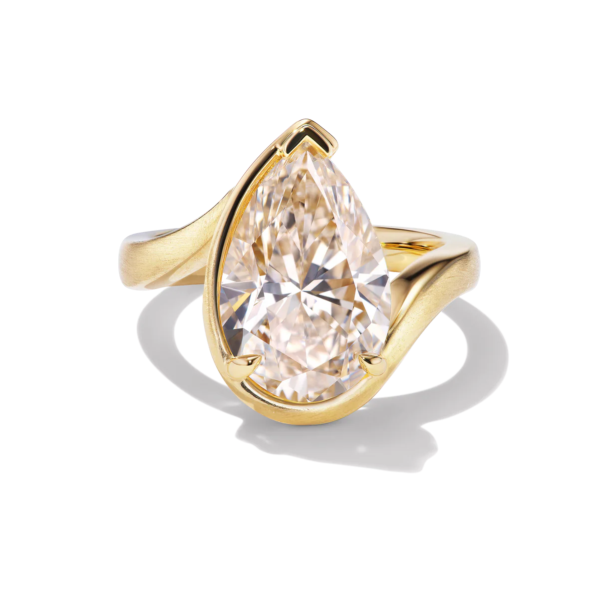 Half Bezel Pear Lab Grown Diamond Engagement Ring