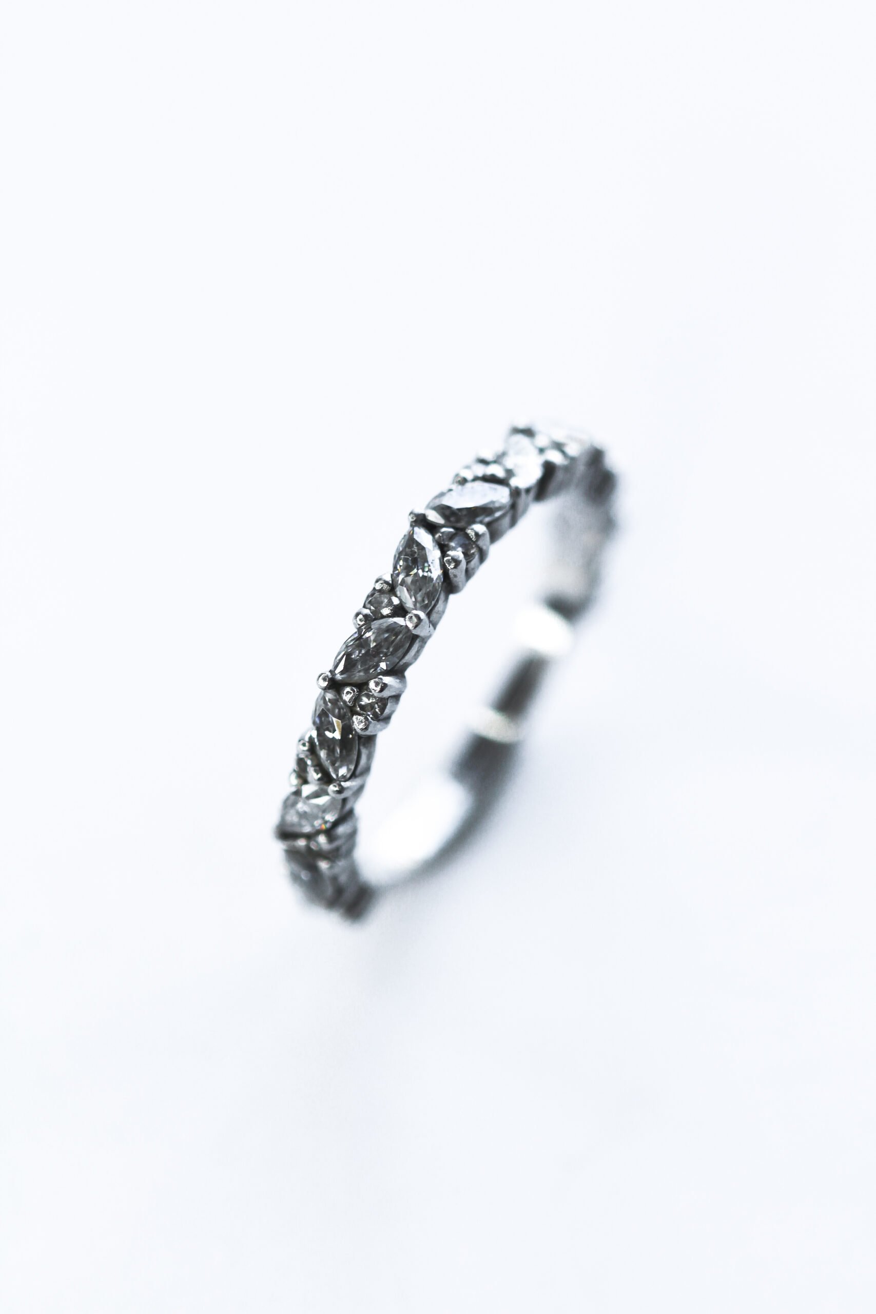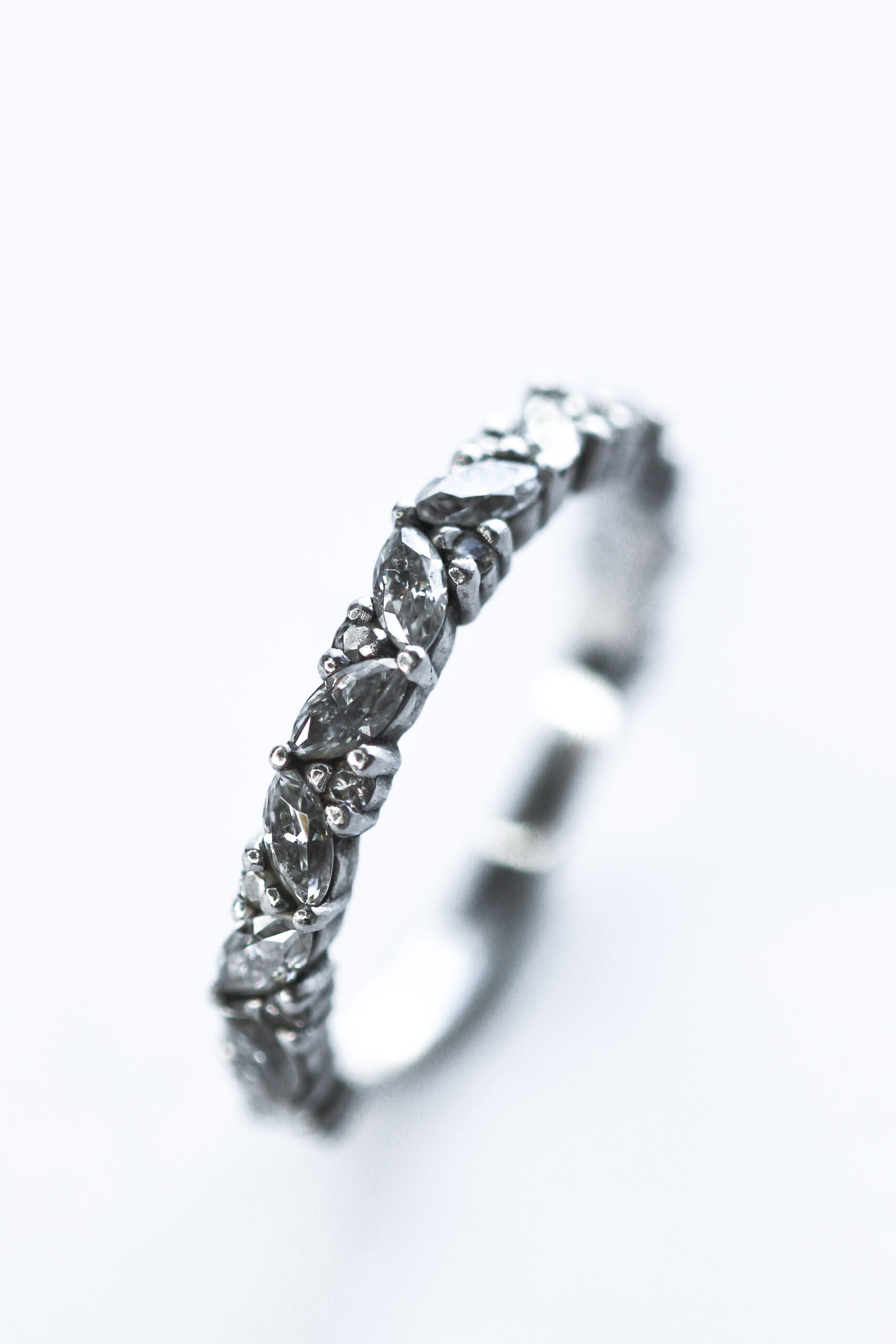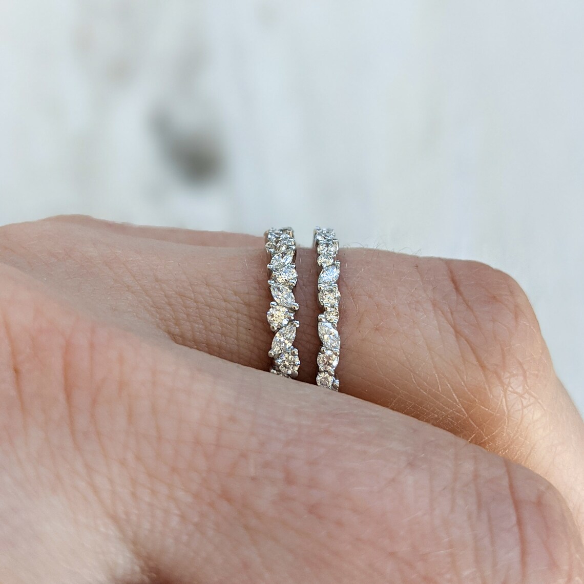 Our Marquise and Round Moissanite Eternity Band is a perfect simple addition to your engagement ring or to wear as part of your everyday ring ensemble.
