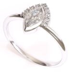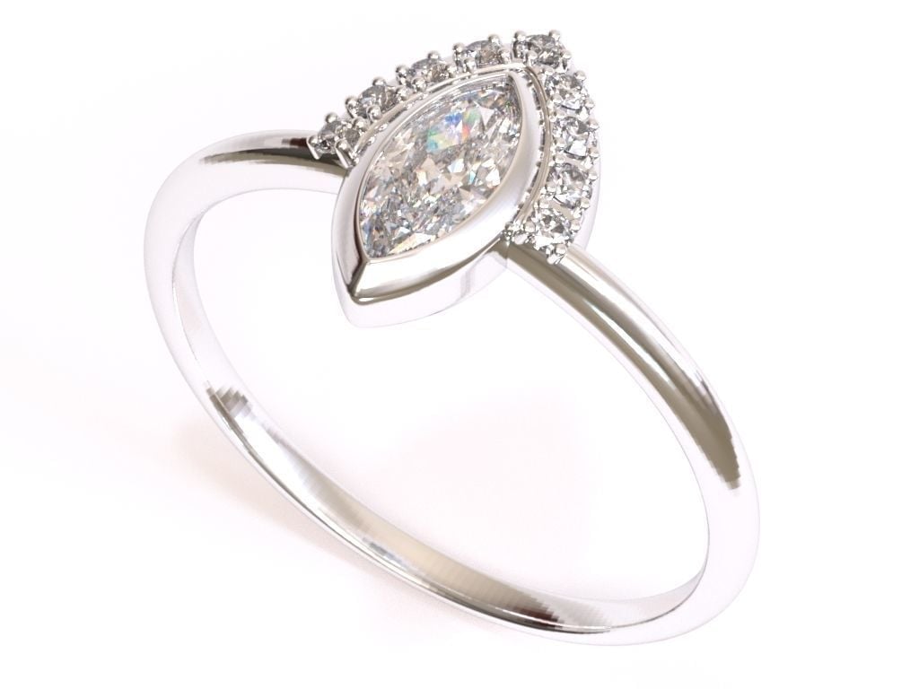 This Marquise Bezel Engagement Ring. A unique and elegant style ring with a moissanite marquise shaped centre stone with a beautiful crown of round brilliant moissanite gemstones.