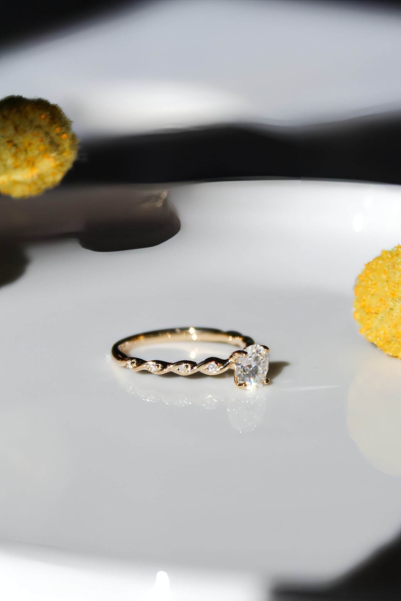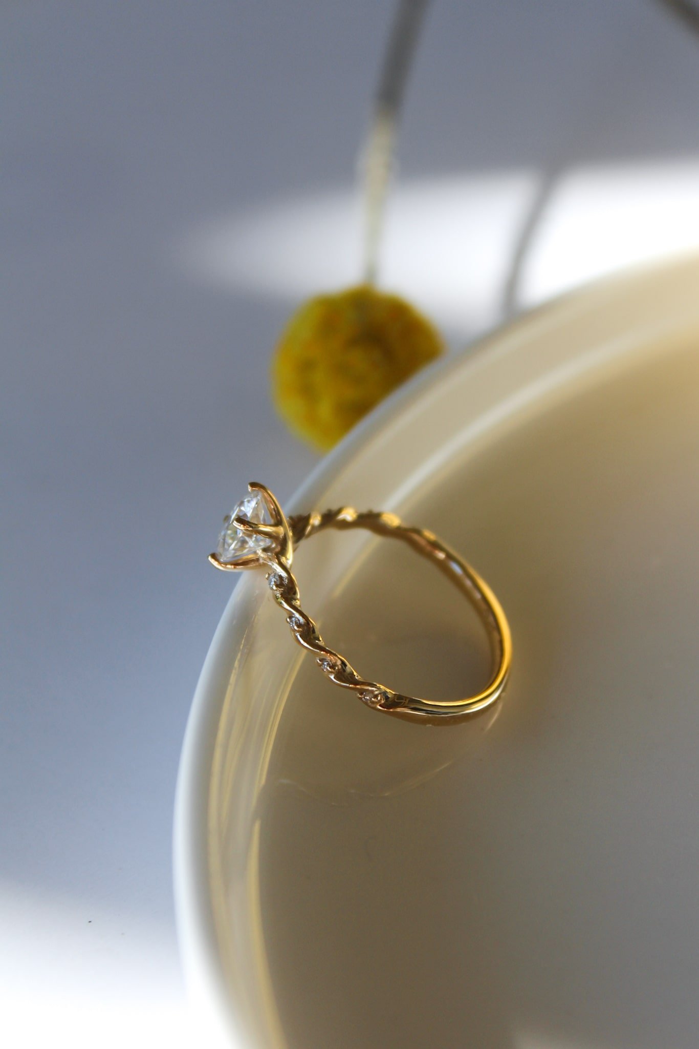 If you looking for a head turner this Moissanite Solitaire twist Engagement Ring is the ring for you.