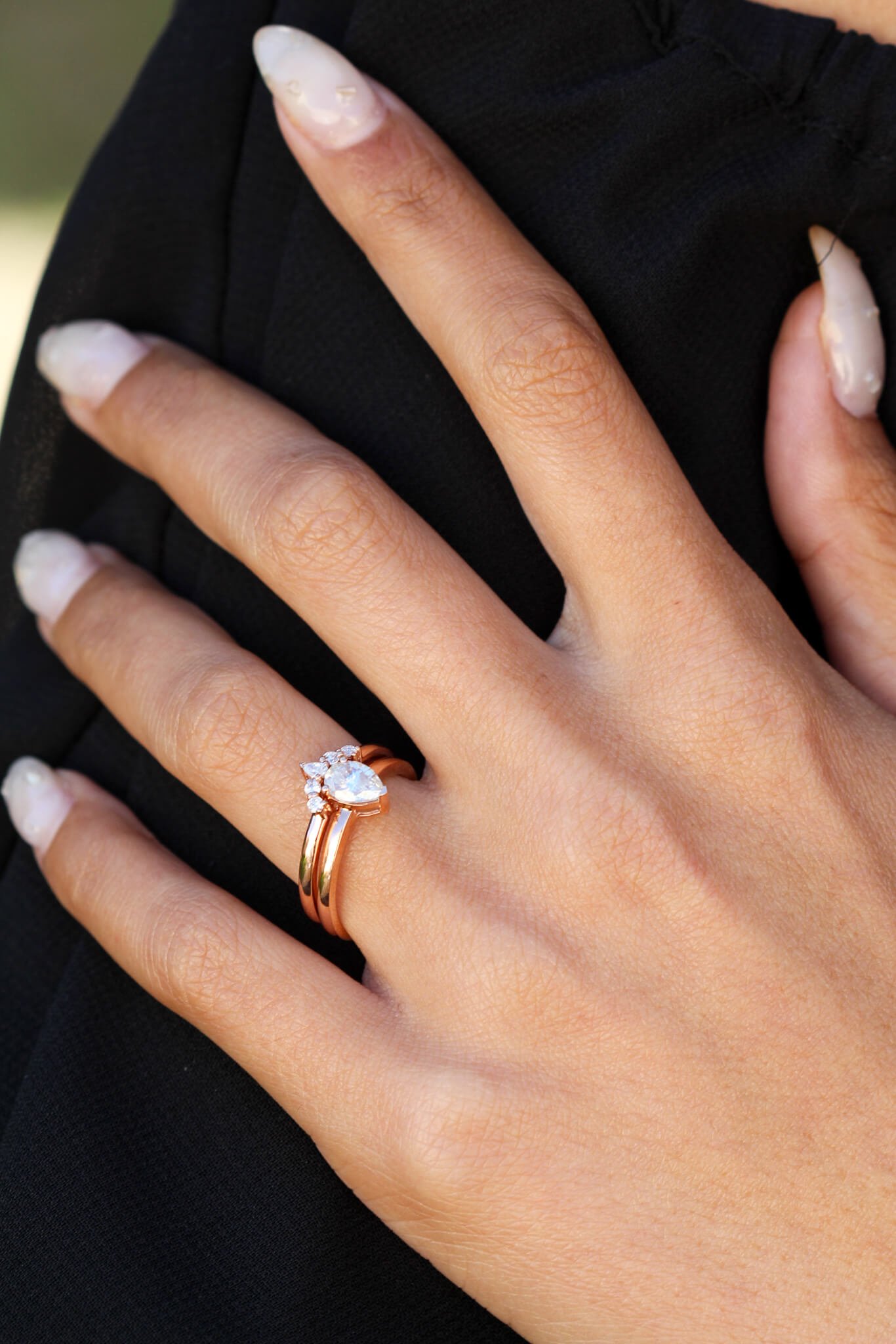 Elevate your bridal style with the modern allure of our 2-piece Pear Moissanite Wedding Ring Set – Where contemporary elegance meets timeless charm.