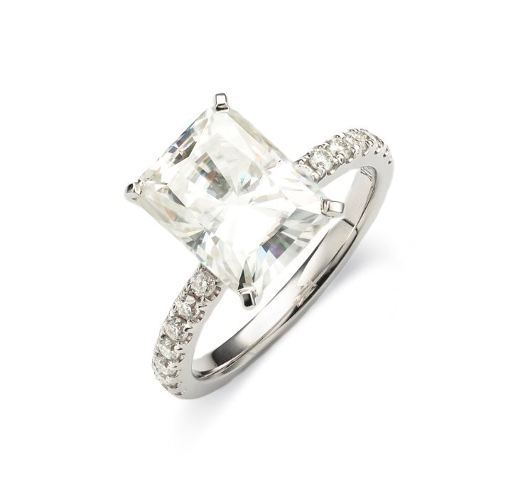 • Unmatched brilliance and fire — moissanite sparkles even more than diamonds