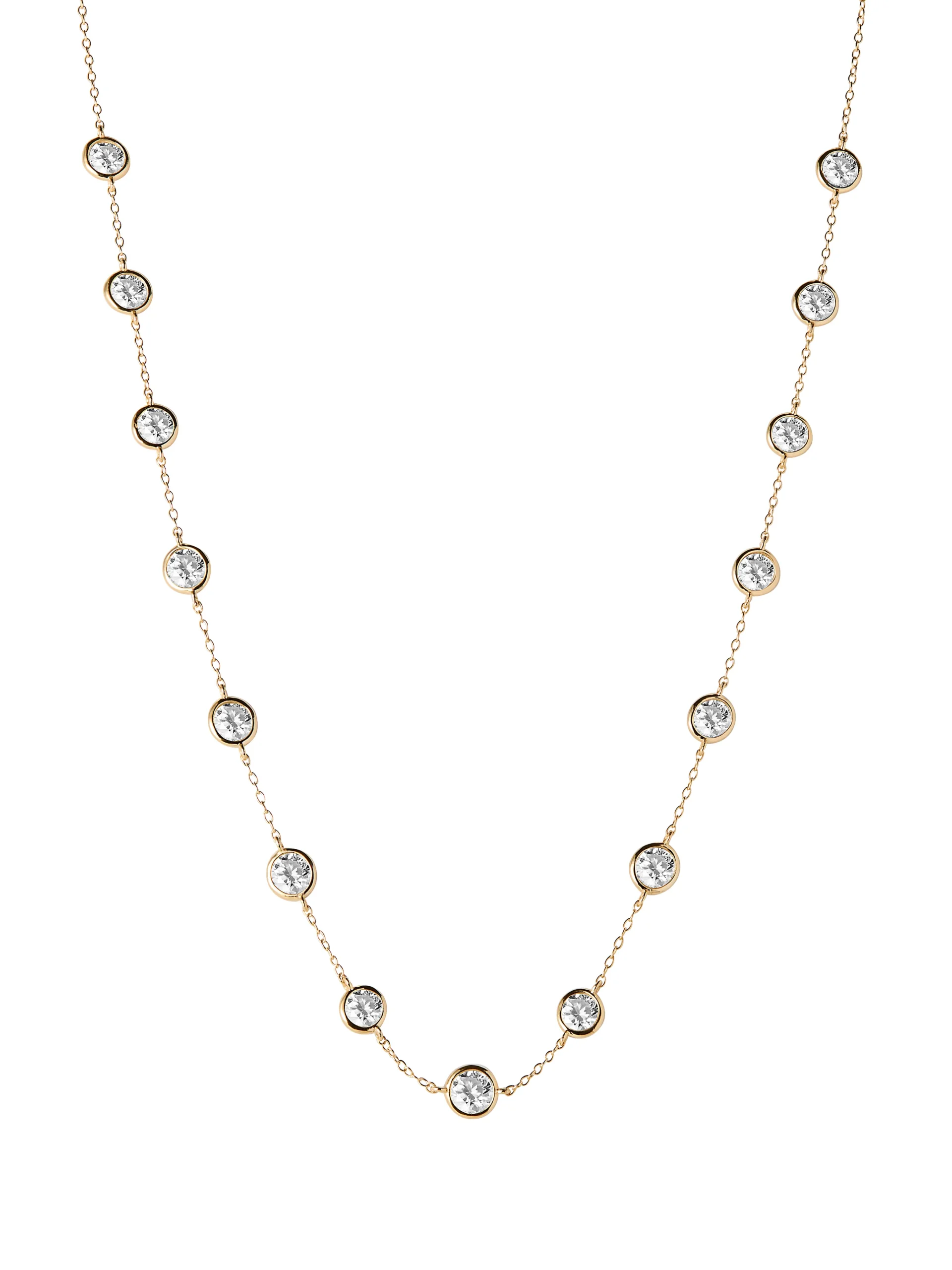 This Round Bezel Moissanite Necklace showcases a delicate strand of 0.50-carat DEW round cut moissanite stones, each bezel-set in your choice of 9k yellow, white, or rose gold. Designed for versatility, it features a secure lobster clasp and can be layered effortlessly with other moissanite chains.