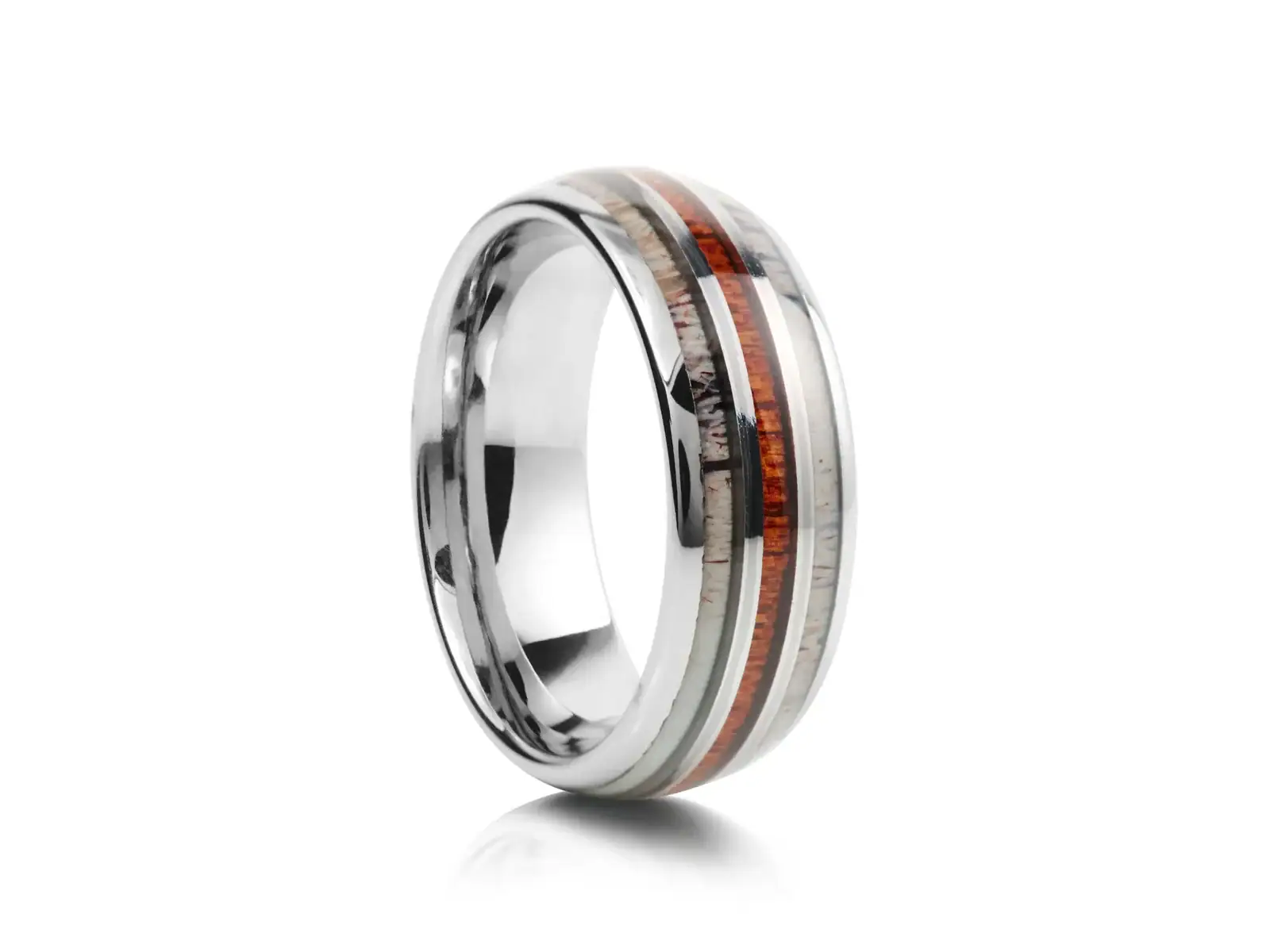 8mm Whiskey Barrel Wood and Antler Tungsten Wedding Ring